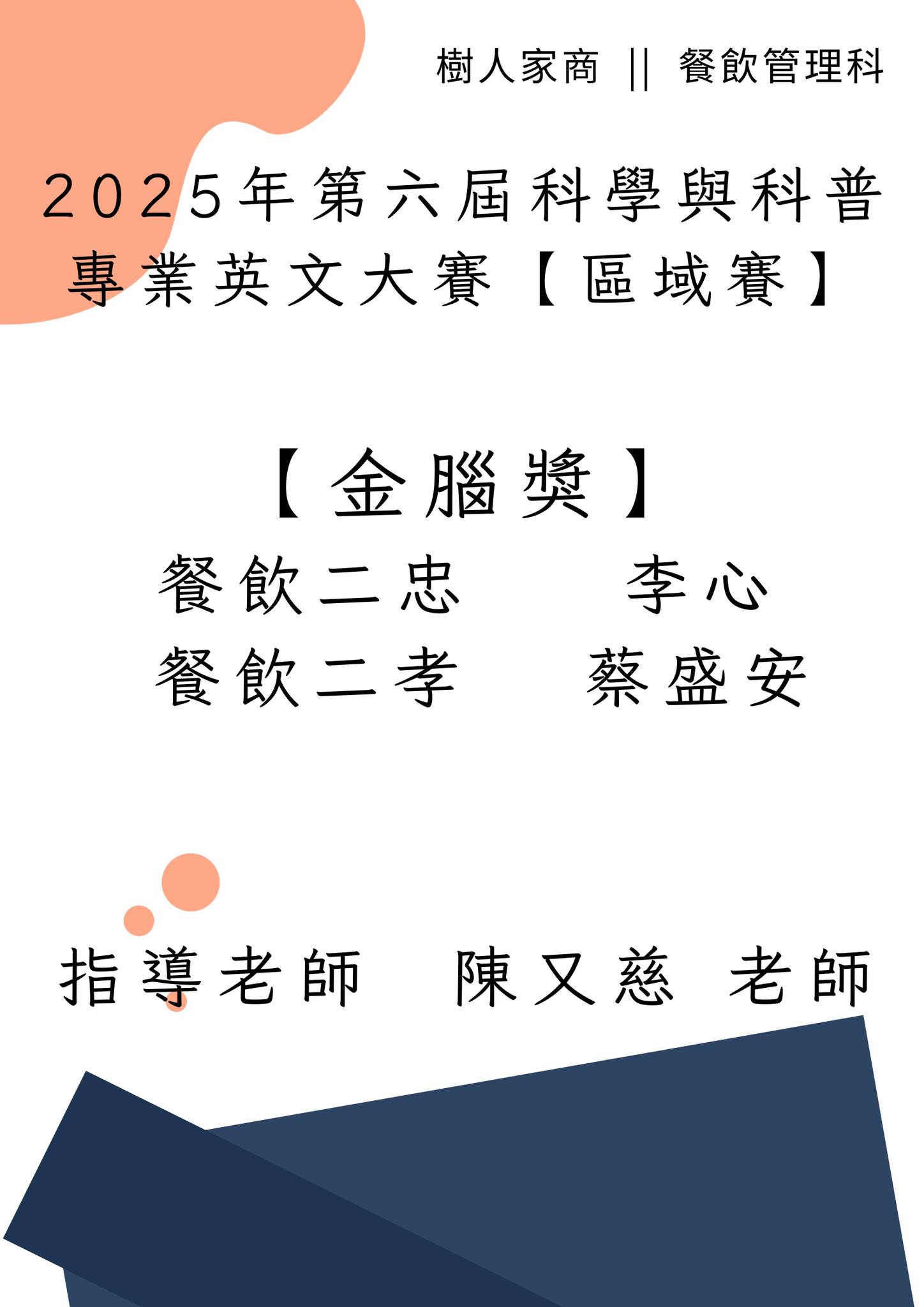 樹人家商餐飲管理科 再傳佳績! ![]()