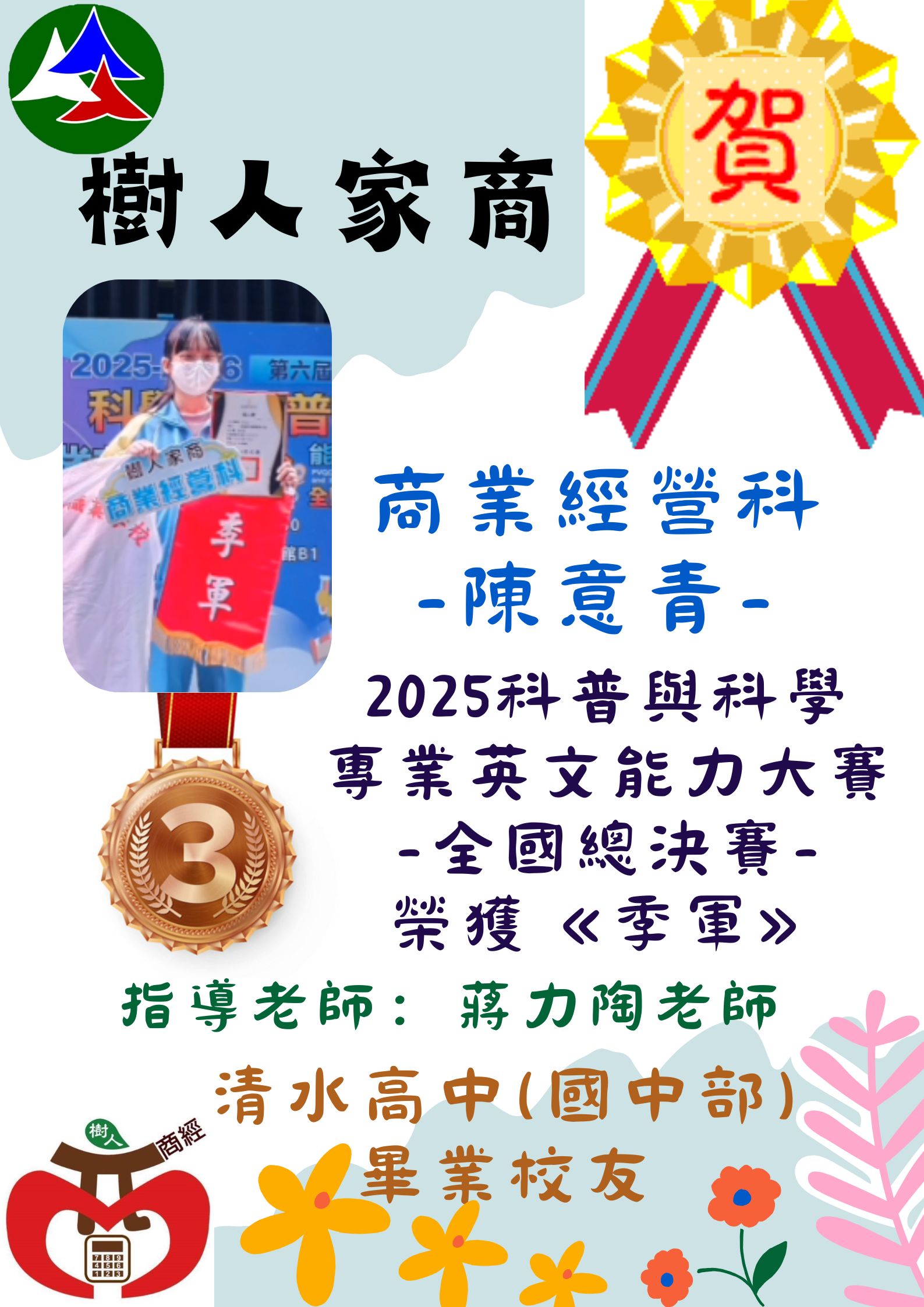#樹人家商 #商業經營科 #樹人商經 #狂賀 #全國季軍 #2025科普與科學專業英文能力大賽 #專業英文 #技職之光 #清水高中附設國中部 #傑出校友 #歡迎加入樹人家商
