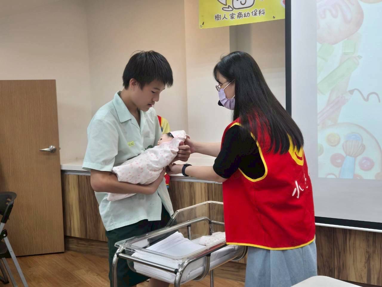 當然,我們的「六萬寶寶」一定要隆重登場,這是一款仿真嬰兒模型,重量和真實寶寶相近,可以讓體驗者親身感受照顧嬰兒的感覺。