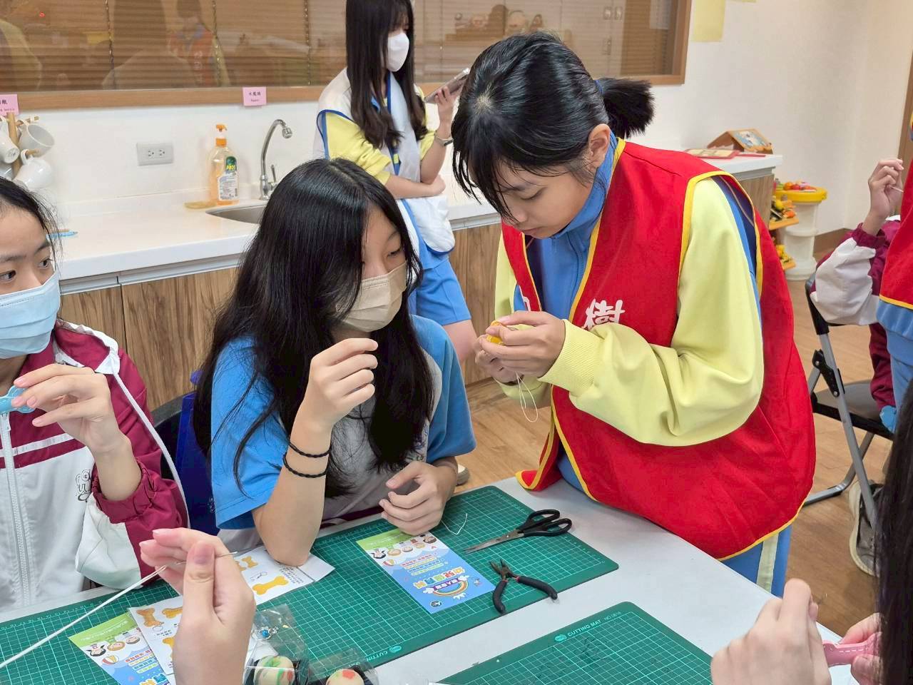 同學們都非常認真,小天使學姐們也在旁協助,看著大家專注又努力的樣子,完成作品後,臉上有著滿滿的成就感~