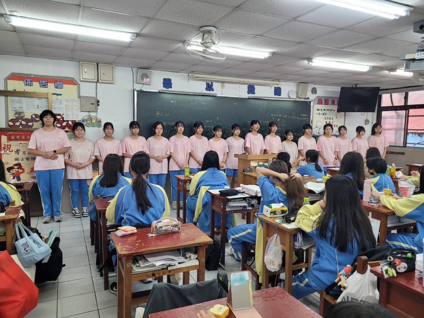就快到學長姐們統測的重要日子,我們懷著滿滿的祝福,走進各班為學長姐們祈福,門外也掛上學弟妹親手製作的「鯉魚旗」,象徵努力向上、迎向成功。