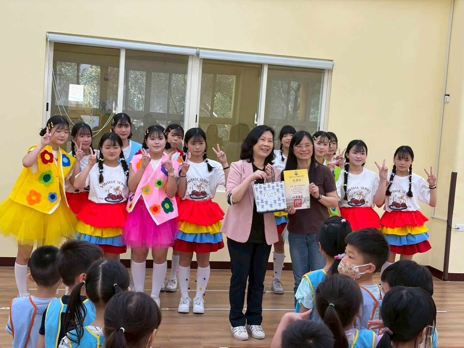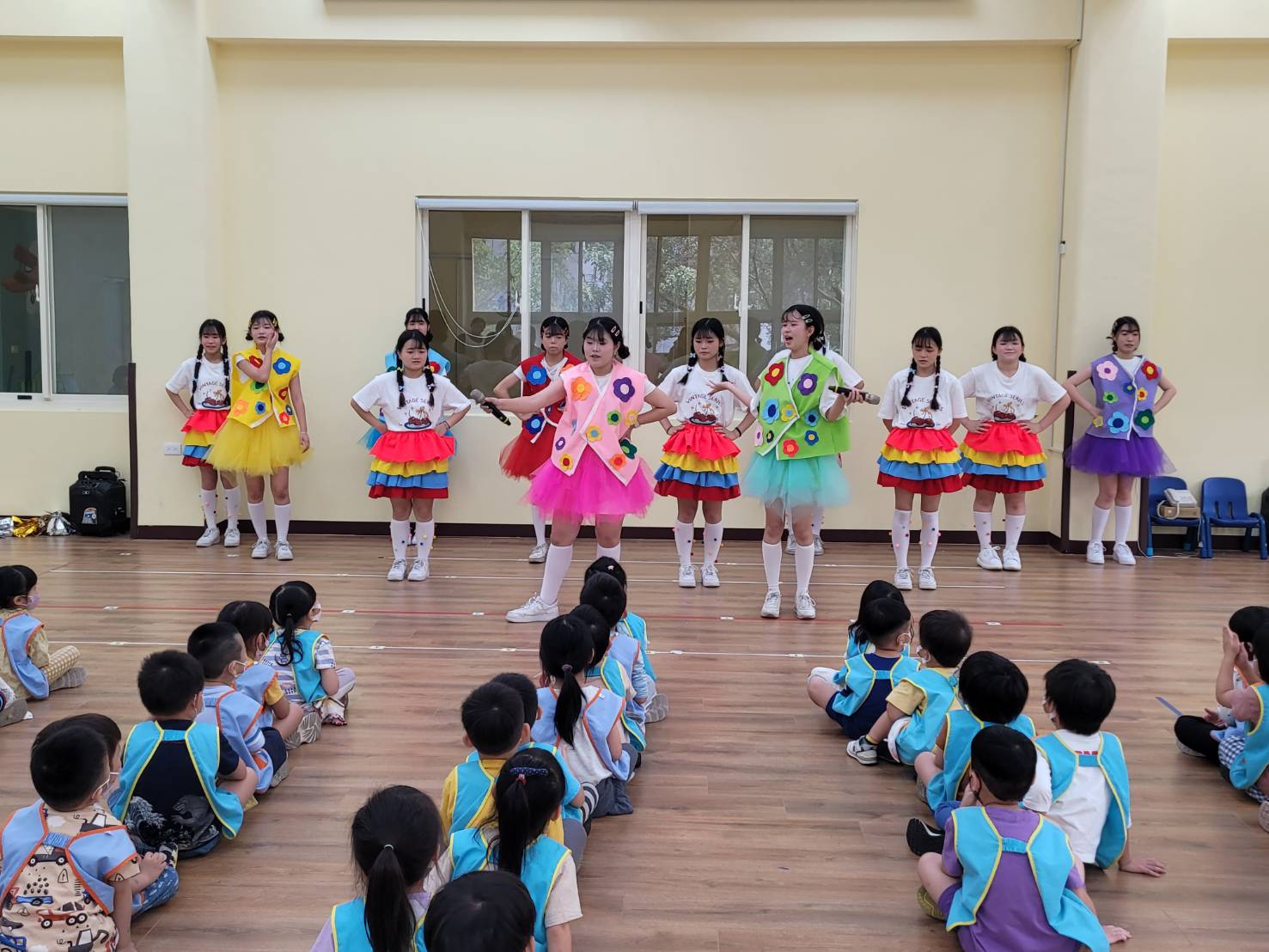 除了帶動唱跳之外,我們也準備了約10分鐘的精彩表演,搭配兩位可愛主持人的帶領,讓整場活動更加活潑有趣✨看到小朋友們開心的笑容與熱情回應,也讓我們感受到滿滿的成就感!