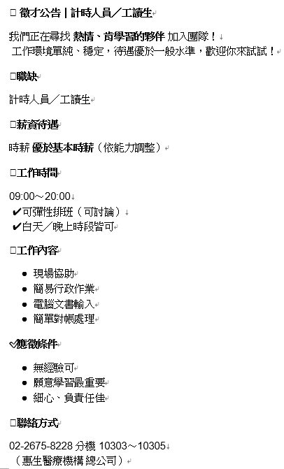 具競爭力之薪資待遇(優於基本時薪/依表現調整)