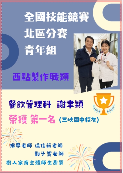 餐飲管理科謝聿穎同學-「西點製作」職類-第一名