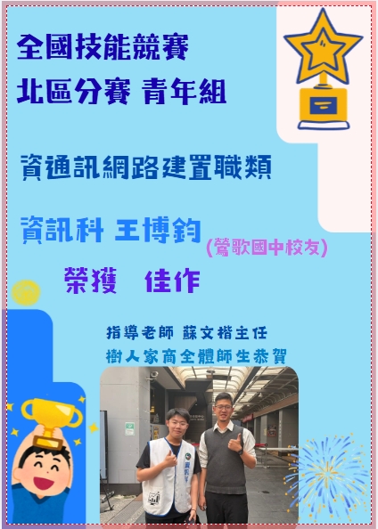 全國技能競賽青少年組北區分賽 成績捷報