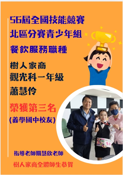 觀一忠 蕭慧伶同學榮獲第三名