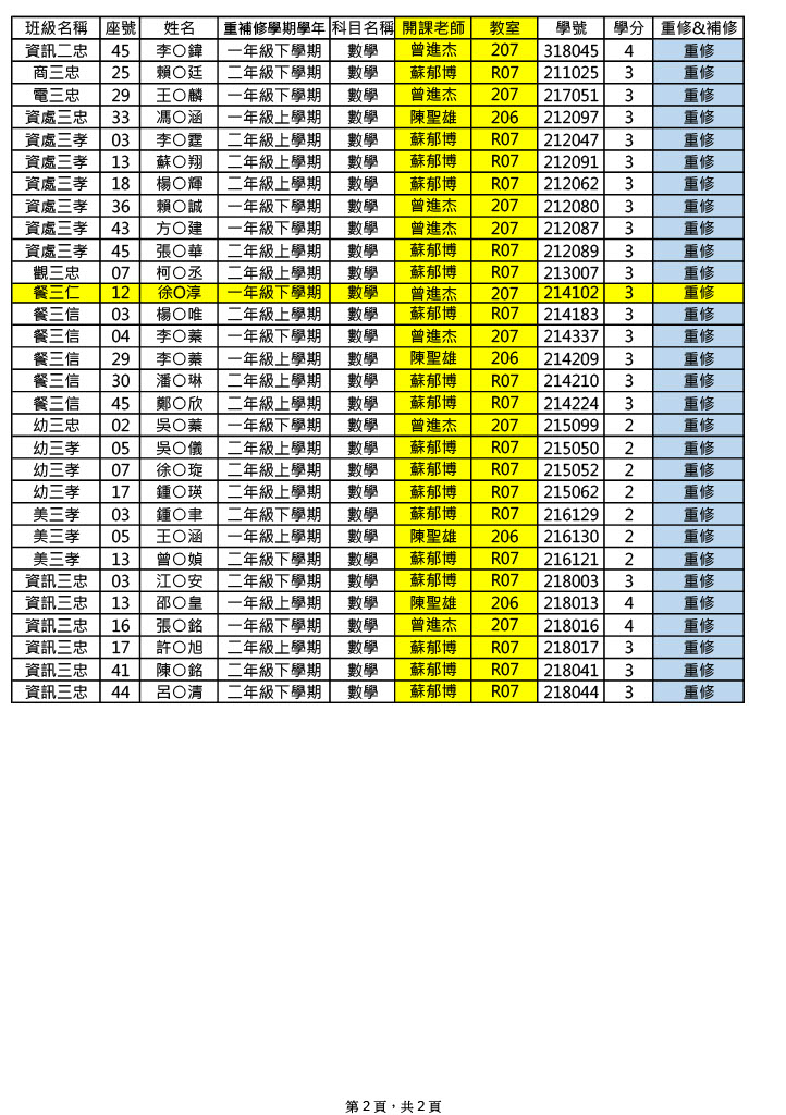 1.請同學11/3(一)16:10準時抵達教室與老師確認重補修課程。