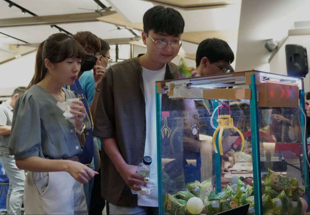 接著,三組老師魚貫分流 ,有人興奮地跑去挑戰 夾娃娃機