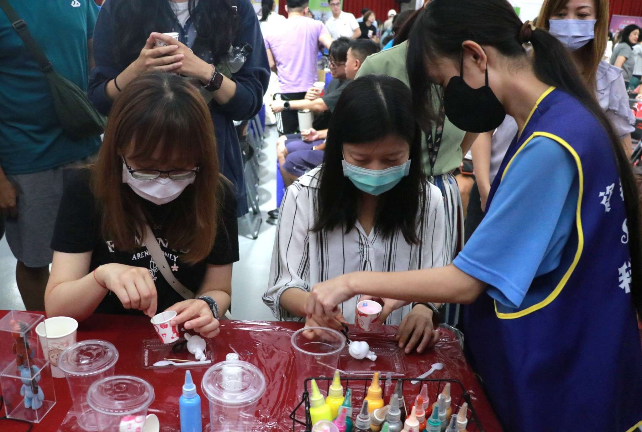 許多老師開心投入流體熊手作 ,色彩流轉、創意閃耀